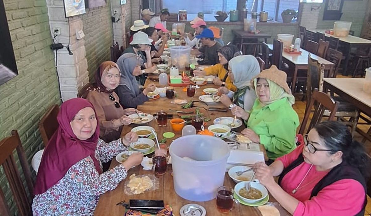 Puas membeli oleh-oleh khas Cirebon, anggota Barraya lainnya, Teh Yanti, Teh Wahyuni, dan Bu Dewi Martinjung langsung menjajal kuliner tahu gejrot di Pasar Kanoman.