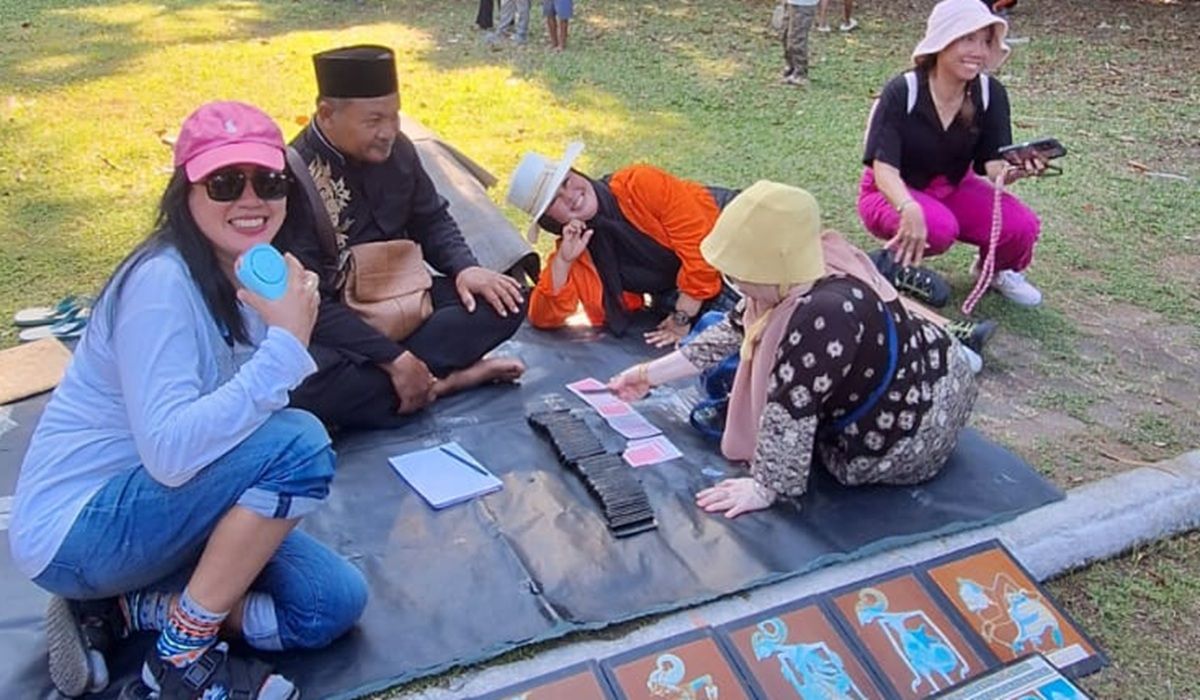 Bu Emma, Bu Damayanti, Teh Risma, dan Teh Ririe sambil bercanda dan senyum-senyum mengikuti arahan tukang falak untuk memilih kartu ramalan.