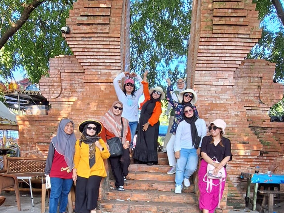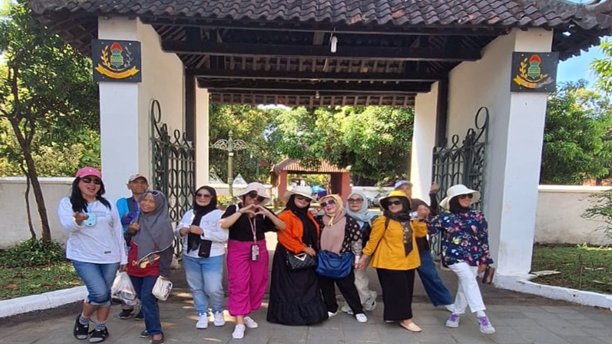 Sementara Teh Wahyuni, Teh Ririe, Teh Imas, Teh Yanti dan Teh Risma penasaran dengan sejarah Masjid Agung Sang Cipta Rasa. Mereka semangat mengabadikan foto di area masjid yang bersejarah itu.