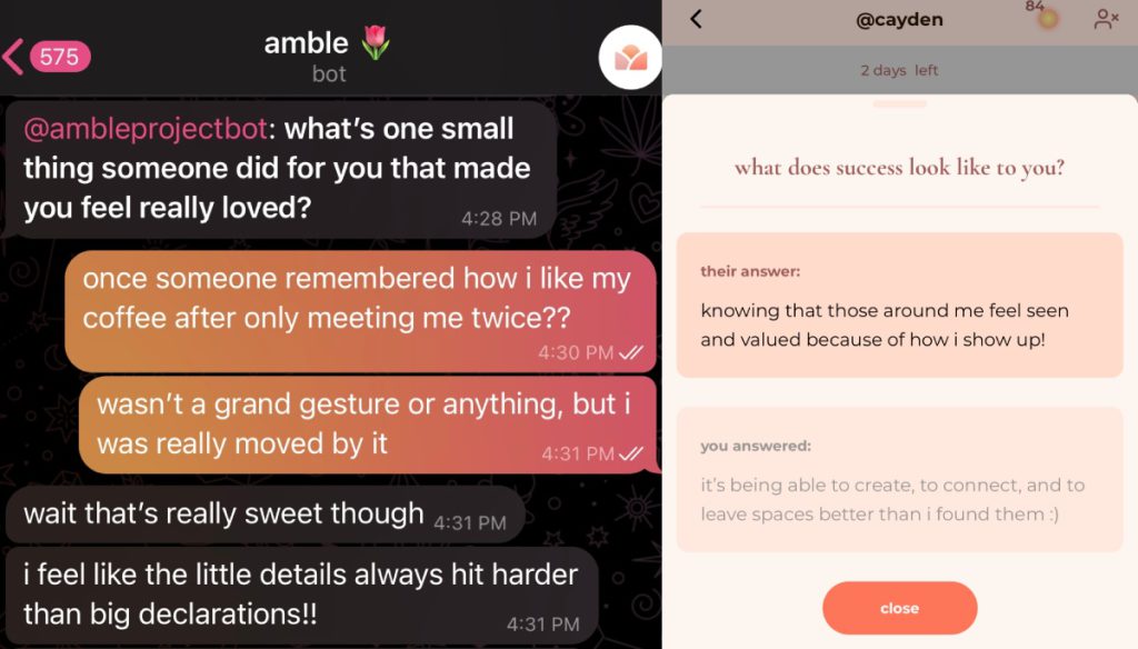 Just by looking at its design, it's evident that Amble is not a conventional dating app or a standard social media platform. Alyssa and Cayden emphasized that its purpose extends well beyond that.