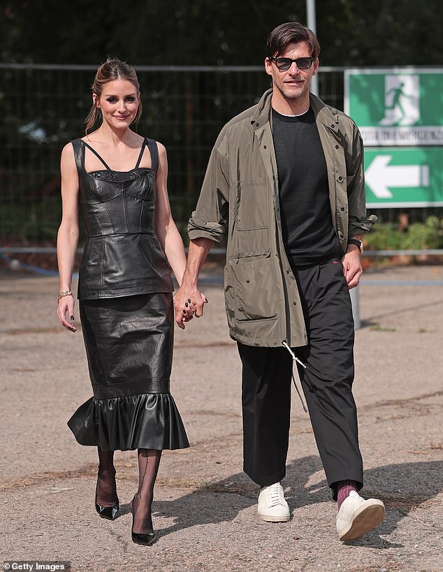 Olivia, aged 39, made a striking appearance in a black leather midi dress when she arrived at the gathering alongside her husband, Johannes, who is 47 years old.